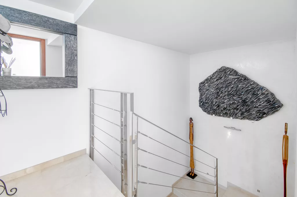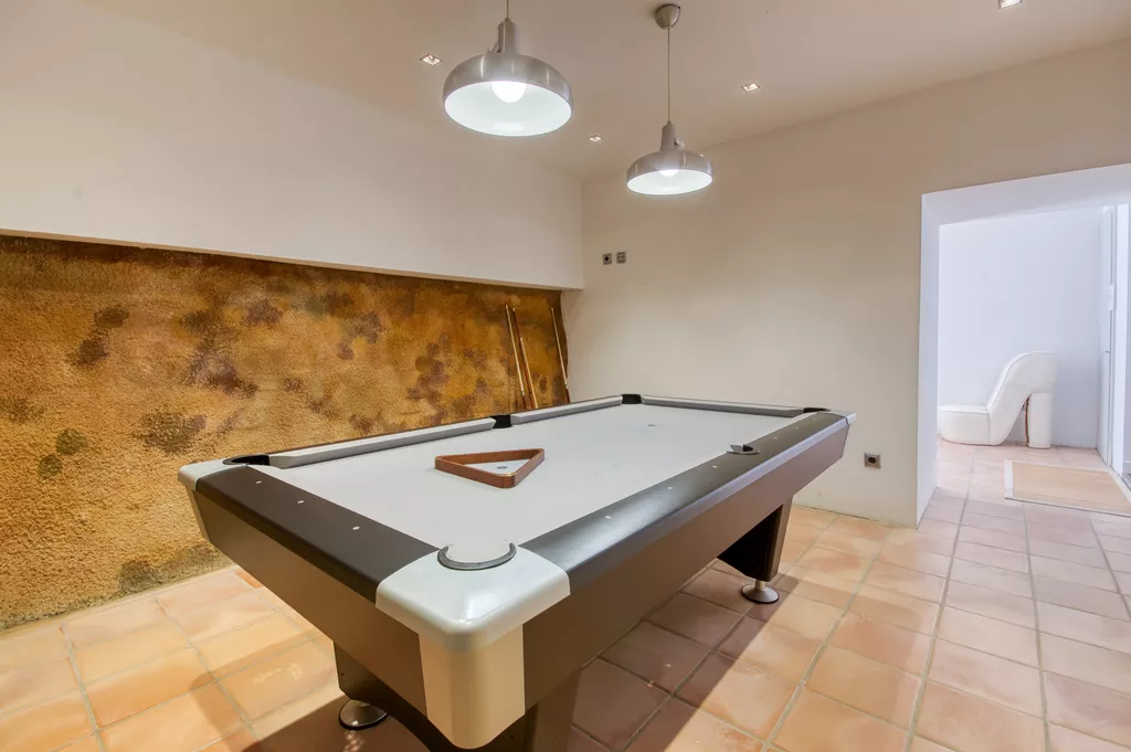 Distribuïda en dues plantes, la villa disposa de 4 dormitoris, 3 banys, i una cuina moderna que s’obre a un ampli saló-menjador, amb grans finestrals que proporcionen accés directe a la terrassa i la piscina. Així mateix, compta amb una sala de billar, un segon saló, bugaderia, garatge i aparcament exterior.