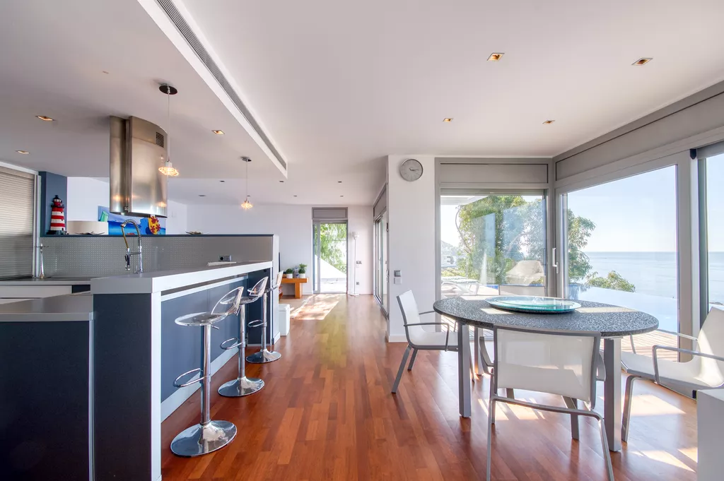 Descobreixi aquesta moderna villa situada gairebé a primera línia de mar, entre Canyelles i Almadrava, a Roses. La propietat sorprèn amb vistes panoràmiques al Mediterrani, una impressionant piscina infinita d’aigua salada i amplis espais exteriors perfectes per gaudir del reconfortant clima mediterrani.