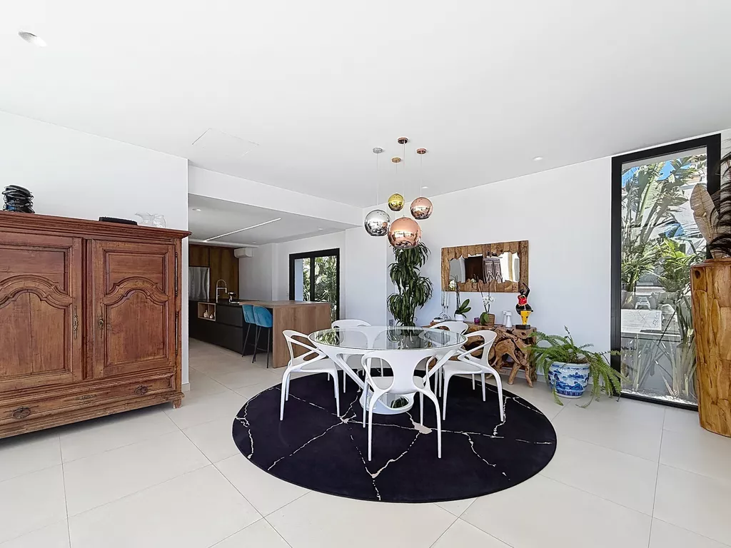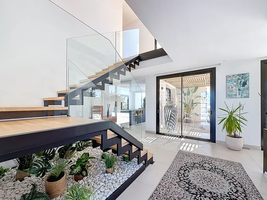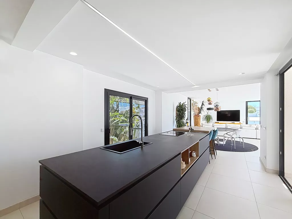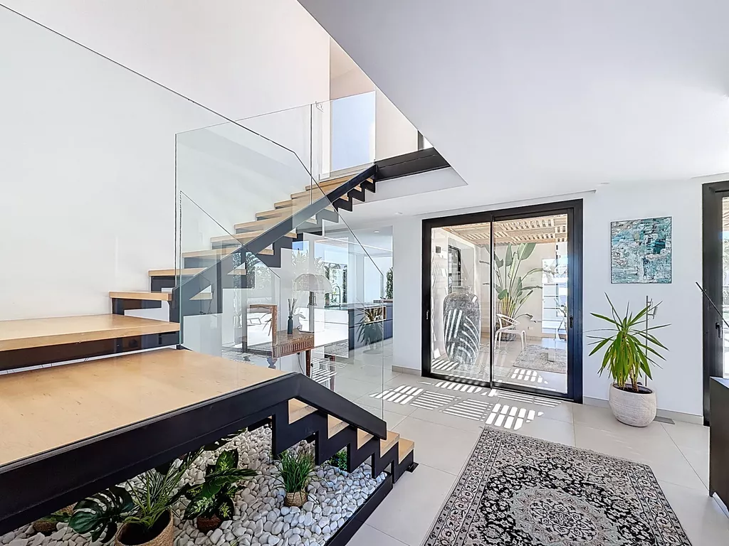 With 6 bedrooms and 5 bathrooms, the villa has a functional and elegant layout, with large windows that connect the interior to the exterior.